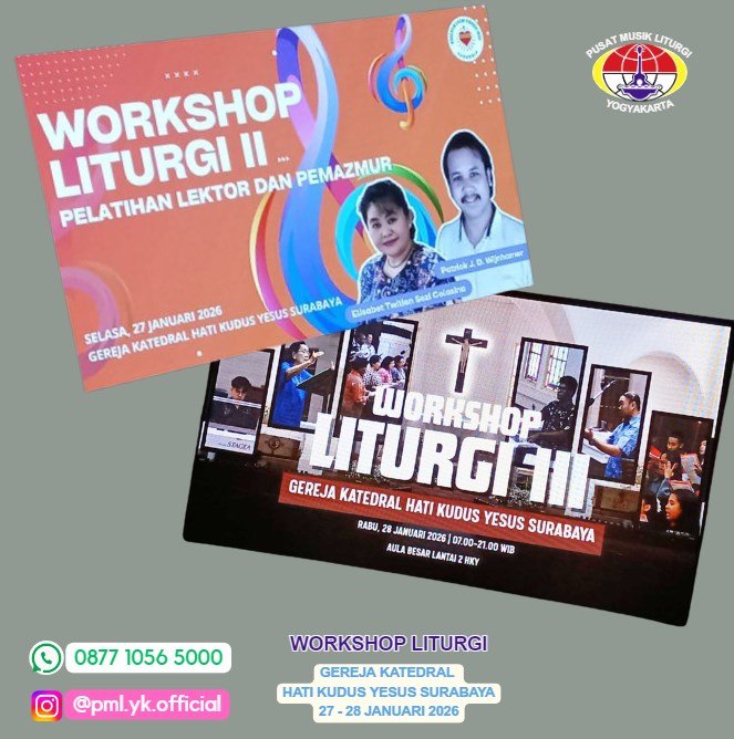 Tanggal 27 dan 28 Januari 2026, Gereja Katedral Hati Kudus Yesus Surabaya menjadi tuan rumah Workshop Liturgi yang menghadirkan Pusat Musik Liturgi ( PML) Yogyakarta. Kegiatan ini menghadirkan dua pemateri, yaitu Elisabet Twitien Colasina dan Patrick Johannes David Wijnhamer, serta didukung dan didampingi oleh Bapak Hartono dari Toko Puskat.